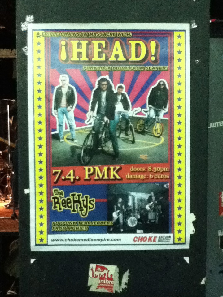 Hi. We're Head. How's it going? We're from Seattle. We've been kicking around the hardscrabble streets of Queen Anne Hill since 1990. Head consists of Ree Ree on Bass/Vocals, Touch on Guitar and Tulu on Drums. The Giggles was a full time member of the band up until 1999 when he got his head screwed on straight and went into the Head Army Reserves. We've put out several records on our imprint Evil Clown Records as well as records on Steve Priest Fan Club, Regal Select and Goner. We average about 3 or 4 shows a year. 2011 we played 2 shows. Looks like 2012 will be more than that. I'll believe it when I see it.